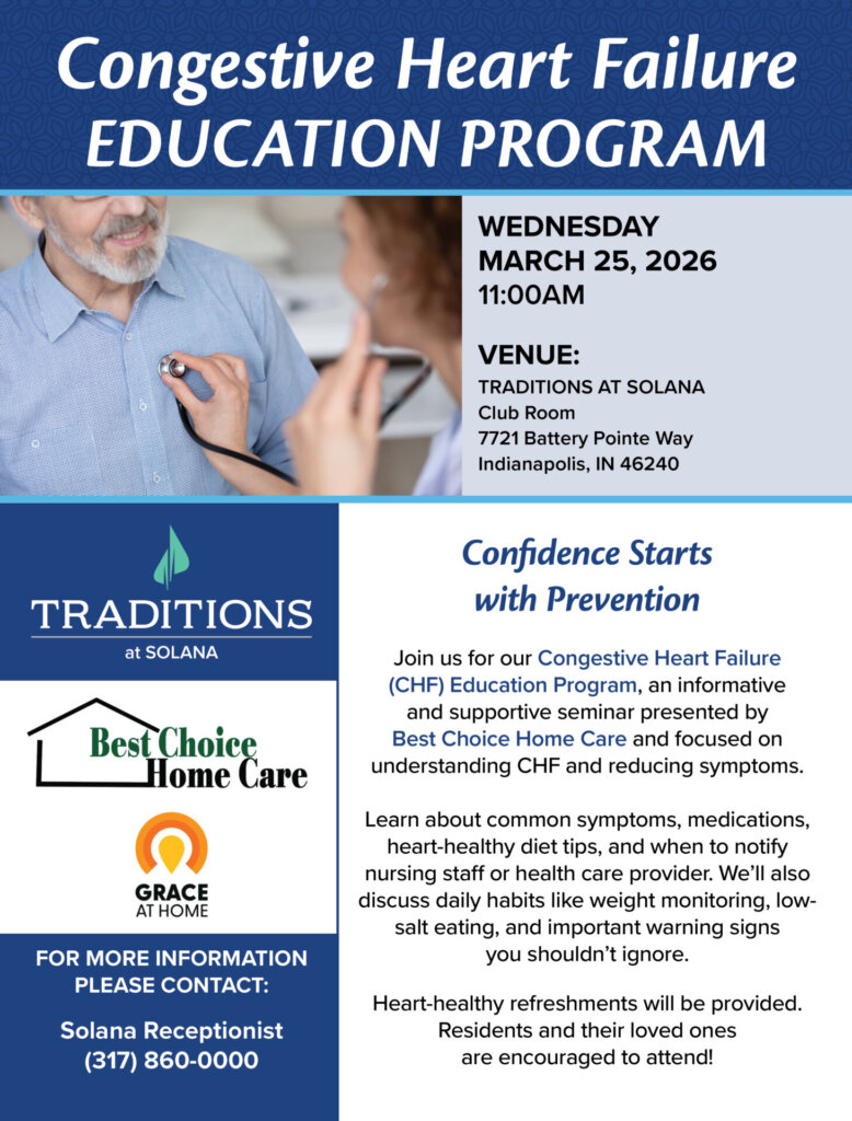 Join us for our Congestive Heart Failure (CHF) Education Program, an informative and supportive seminar presented by Best Choice Home Care and focused on understanding CHF and reducing symptoms.